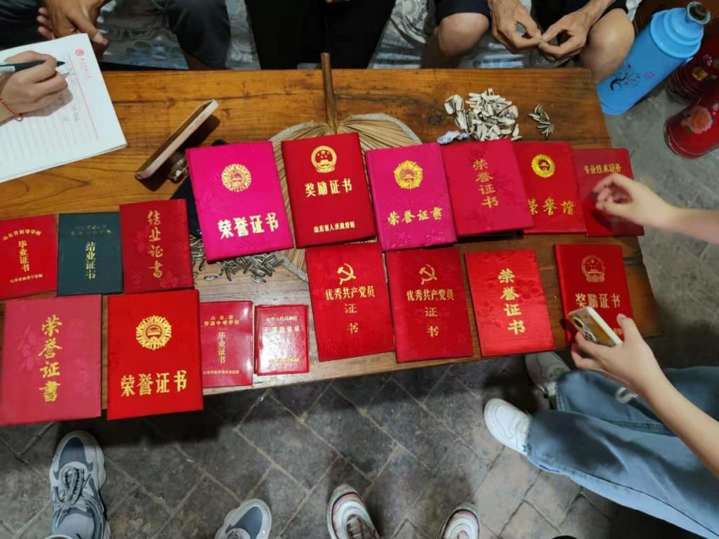 在社会实践成员的采访下,刘其范爷爷展示了曾获得的荣誉证书并向同学们讲述了自己曾经的峥嵘岁月。刘其范爷爷主要从事教育工作,曾担任校长一职,有38年的教龄,工作期间积极负责,曾被评为全国百名优秀校长,多次被评为教学能手。同时,刘其范爷爷家族是名副其实的教育世家,家中兄弟六个,除大哥外均为校长或人民教师。