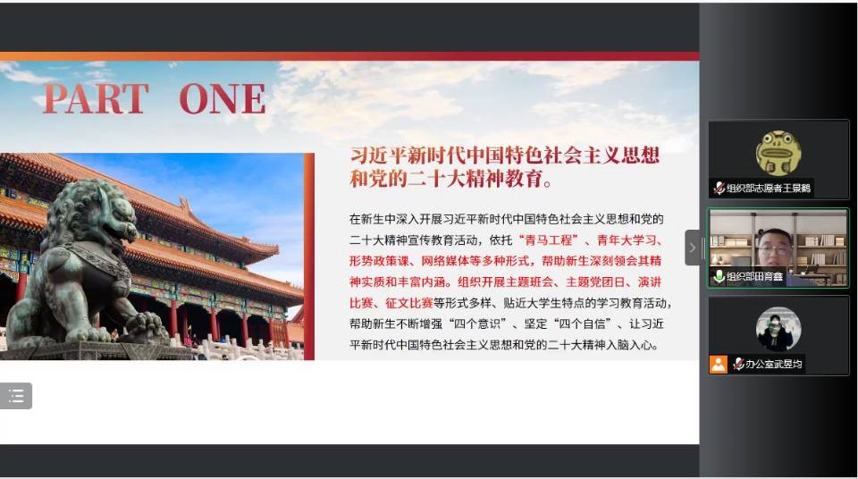 为筑牢新生的思想基础,9月14日下午,香港赛马会投注站 于腾讯会议举办2022级理想信念教育讲座。组织部田育鑫担任主讲人,2022级全体新生参加。