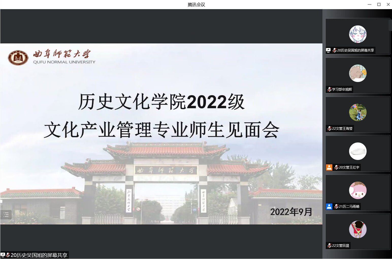 9月15日上午,香港赛马会投注站 通过腾讯会议,举办2022级文化产业管理专业师生见面会。香港赛马会投注站 副院长王京传、文化产业管理教研室主任郝志刚、文化产业管理专业教师刘庆余、续大鹏、高睿霞、严春艳、2022级辅导员赵齐鲁出席会议。会议由赵齐鲁主持。