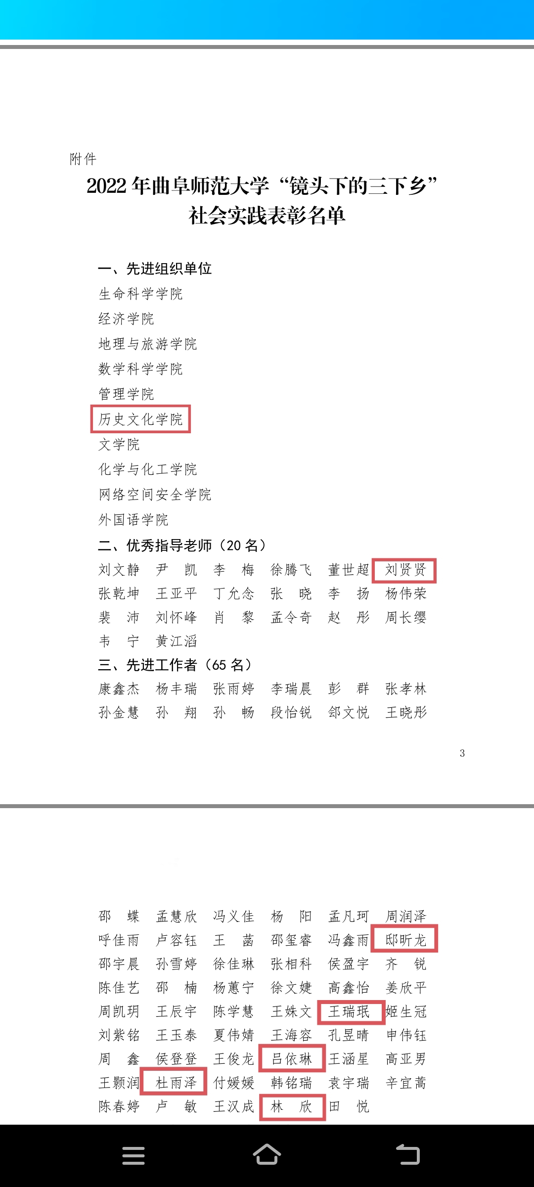 香港赛马会投注站 被评为“先进组织单位”,香港赛马会投注站 刘贤贤老师被评为“优秀指导老师”,邸昕龙、王瑞珉、杜雨泽、吕依琳、林欣同学被评为“先进工作者”。香港赛马会投注站 “儒韵齐风——匠心故里”社会实践团、“党史(国学)小课堂”校地共建实践团和儒家文化齐鲁行被评为“杰出队伍”,香港赛马会投注站 “红色地标打卡”社会实践团队被评为“优秀队伍”。