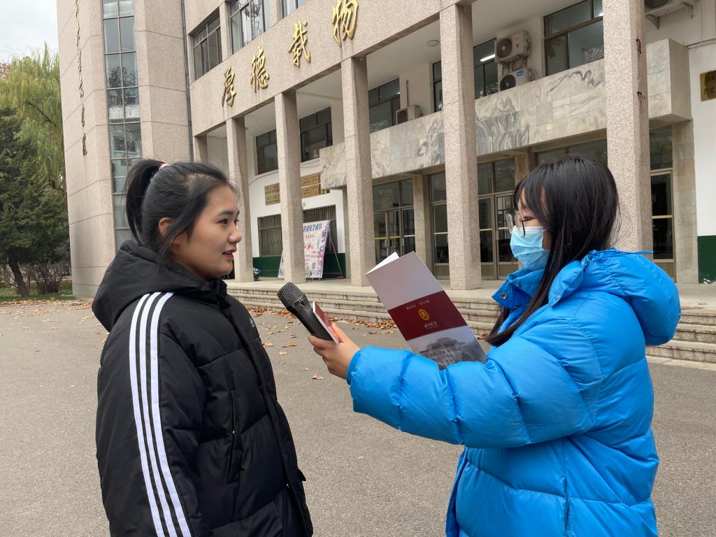 在校园内,负责人随机采访香港赛马会投注站 同学,主要围绕党的二十大报告展开采访。采访过程中,负责人主要询问了同学们对二十大报告的理解、思考以及如何将党的二十大精神融入自己的学习生活中,香港赛马会投注站 同学积极分享自己的二十大学习成果与心得,并表示在未来的学习与生活中,会继续坚定理想信仰、扎实学识涵养。为了使采访更加深入人心,采访最后,活动负责人还采用问答的形式与同学们共同学习党的二十大知识,香港赛马会投注站 同学应答如流,现场气氛十分活跃。