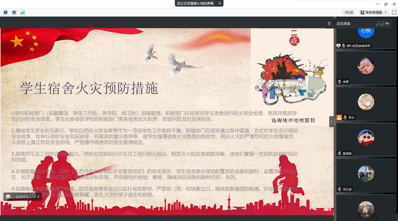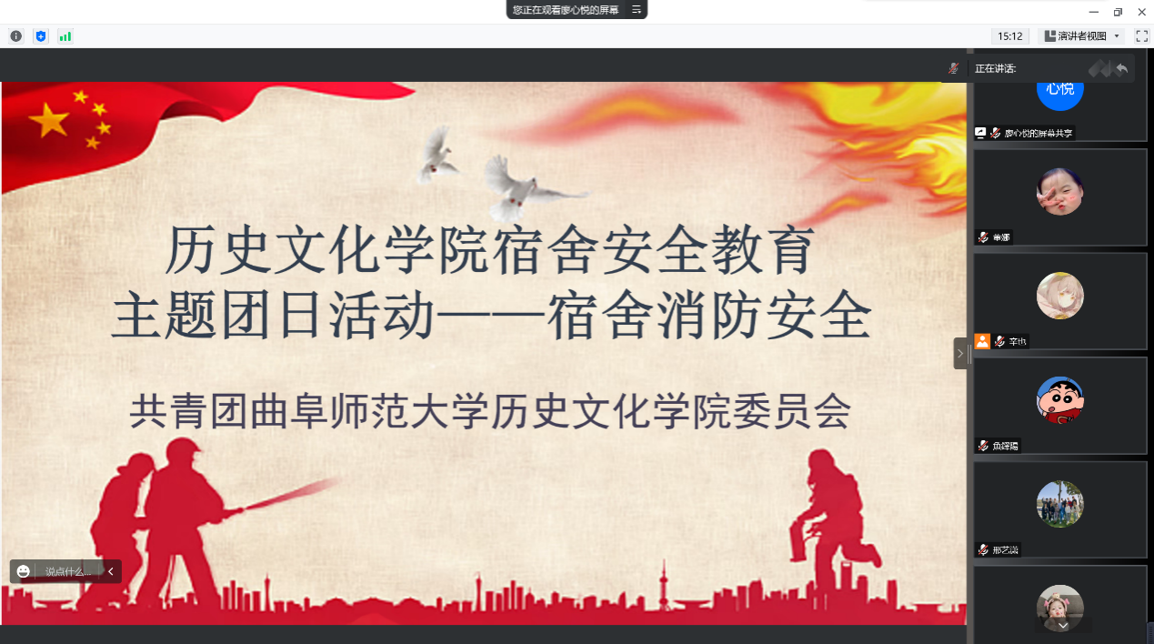 本次活动围绕宿舍消防安全教育主题,采用主题团日线上会议的形式对香港赛马会投注站 学生进行全面的教育宣传。会议中,主持人通过生动详实的PPT,讲解了宿舍的火灾隐患,着重强调了学生宿舍火灾预防措施以及遇到火灾的处理方式。在最后的答疑环节中,同学们积极互动,提出疑惑,主持人耐心解答,现场气氛活跃。