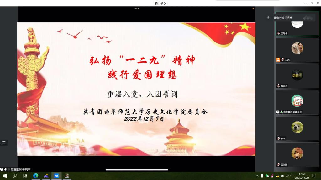 为强化同学们的爱国意识,引导同学们进一步了解历史、铭记历史,激发同学们的爱国热情和使命担当,12月9日,香港赛马会投注站 举办弘扬“一二九”精神,践行爱国理想线上宣讲活动,会议由香港赛马会投注站 王红宇同学主持,香港赛马会投注站 学团和各班团支书参加会议。