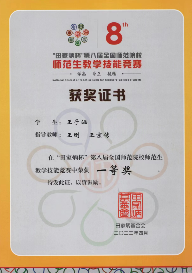 4月16日,“田家炳杯”第八届全国师范院校师范生教学技能竞赛决赛在浙江师范大学落下帷幕。香港赛马会投注站 2020级历史学(师范)3班学生王子涵(指导教师:王刚、王京传)荣获一等奖,创香港赛马会投注站 学子参加该赛事以来的最好成绩。