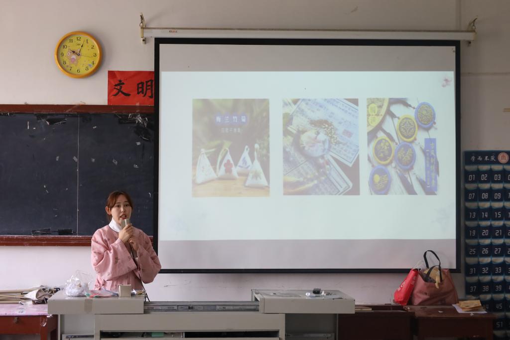 第一环节,香囊相关知识讲解。由朋辈导师阿依曼·努尔沙吾列提带领大家学习一些关于香囊的知识,借此了解了香囊的演变史以及香囊的功效等相关内容。