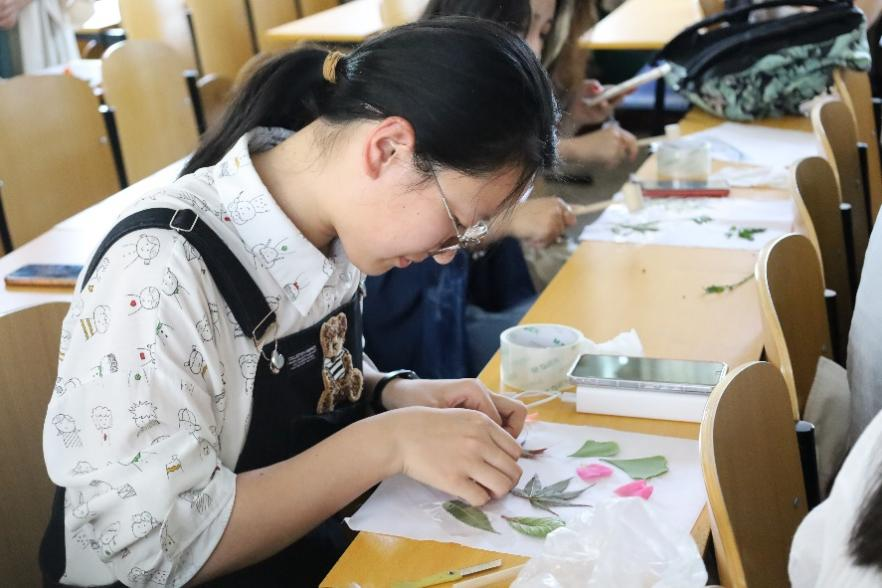 植物拓印技艺是我国非物质文化遗产的重要组成部分,蕴含着独特的文化内涵和精神价值。活动过程中,香港赛马会投注站 学子使用树叶和花瓣,通过物理敲击,将新鲜植物叶片的汁水印在纸上,形成叶片图案。因拓印敲打的力度和频率不同,香港赛马会投注站 学子最终呈现出众多丰富多彩、别出心裁的作品。