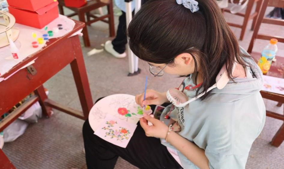 本次非遗体验项目众多,分为京剧脸谱上色、团扇上色、灯笼彩绘、泥塑彩绘、油纸伞彩绘、剪纸、点翠发簪、射箭八个项目。同学们在活动当中发挥了自身的想象力,感受到了非遗文化的魅力所在,学习到了老一辈非遗人对传统技艺的热爱和坚守,展示了青春风采。