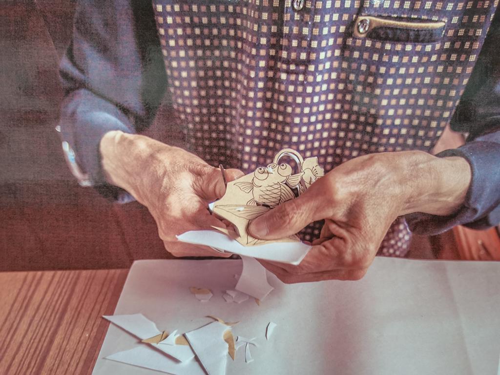 8月4日上午,实践队员拜访省级黄县窗染花代表性传承人王松生先生。王松生自幼随母学习“窗染花”制作技艺,古朴端雅、表情细腻、色彩丰富见长,2018年9月,王松生的10幅黄县窗染花作品在中国第五届非物质文化博览会上参展。他曾荣获2011年“山东省农村优秀文化人才”奖、2013年“传承经典烟台市庆新春剪纸作品”二等奖、2014年“文化龙口红色印记庆新春剪纸作品”二等奖、龙口市2019年最佳传承奖等。王松生老先生年逾古稀,仍坚持这份他热爱的事业。“黄县窗染花是咱黄县最有民族特色的一种艺术品。我从小跟着母亲学窗染花,窗染花就是剪出来以后,再把它染出来。用宣纸代替过去的榆木片。以前在榆木片上画有把握的只有画家或者花匠,广大民众没有这个技术。后来换上宣纸,大多数人都能接受这种做法。”王松生先生为实践队员介绍过去与现在窗染花的不同。一幅幅生动形象的花鸟鱼虫一剪就是几十年,但王松生老先生却乐在其中。接着实践队员又去拜访省级黄县窗染花代表性传承人孙少莹女士。孙少莹女士介绍到窗染花的研制过程不仅是对手工艺人技艺的考验,更是一种心境的磨炼。剪纸必须全神贯注,集中精力,与绘画雕刻等技术有着明显的不同。手法步骤一旦出错,无法进行修改,只能重新进行创作,相当于前功尽弃。