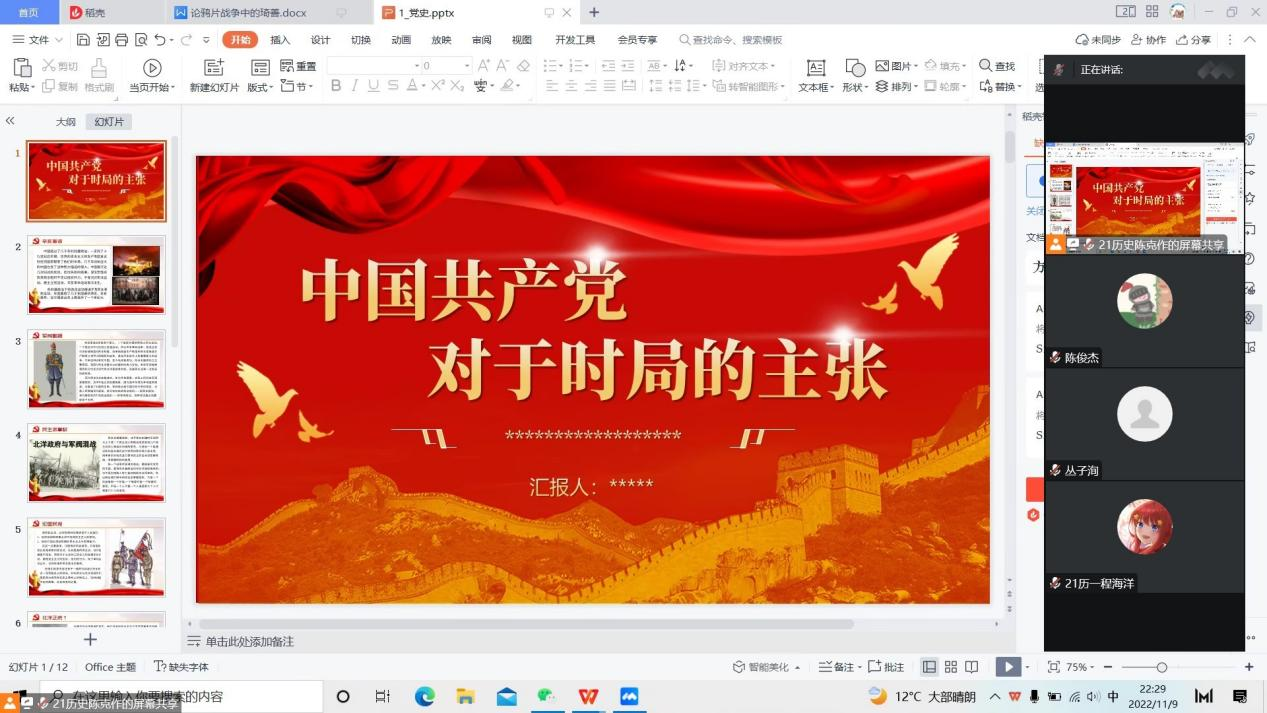 本次读书会围绕《建党以来重要文献选编》中的文章进行介绍,由五位同学通过PPT形式向同学们分享。五位同学分享结束后,在自由讨论环节中,同学们积极发言,谈论自己的阅读感悟或疑惑之处,之后由发言人或大家讨论解惑。