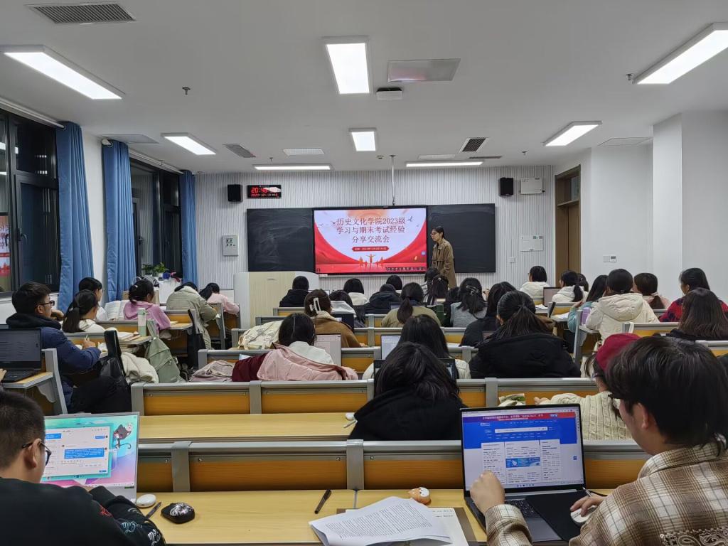 会上,徐文丽结合自身的学习和考试经历,归纳了课程学习、史料阅读、资料整理、期末复习等方面的方法和经验,并针对专业课和公共课考试的备考经验和答题技巧等提出具体建议,同时,徐文丽还总结了整理知识框架、关键词记忆法、阅读文献等系列学习方法,建议同学们注重基础知识的巩固和复习,以良好的心态迎接期末考试。在现场答疑环节中,2023级同学根据自身问题进行提问,徐文丽根据同学们提出的问题进行耐心详细地解答,并预祝同学们取得优异的成绩。交流会最后,2023级辅导员夏金金老师鼓励同学们向优秀的榜样学习和看齐,预祝同学们取得优异的成绩。