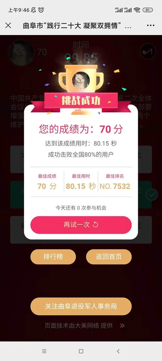 为支持国防和军队建设,普及国防双拥知识,增强双拥工作活力,增强新时代双拥共建工作的使命感、责任感,3月14至4月14日,香港赛马会投注站 积极参与曲阜市“践行二十大凝聚双拥情”双拥知识竞赛答题活动。