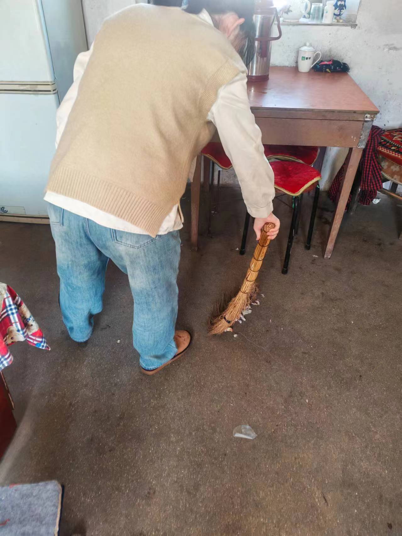 随后,队员们开始上门拜访独居老人。首先来到的是吕大爷的家中,实践队员们帮助吕大爷张贴了对联和窗花,打扫了室内卫生,并通过与老人的交流,了解到了其生活状态和需求。在见证了实践队员们用心地付出后,吕大爷高兴地说道:“多亏了你们啊,真能干,真不错!”