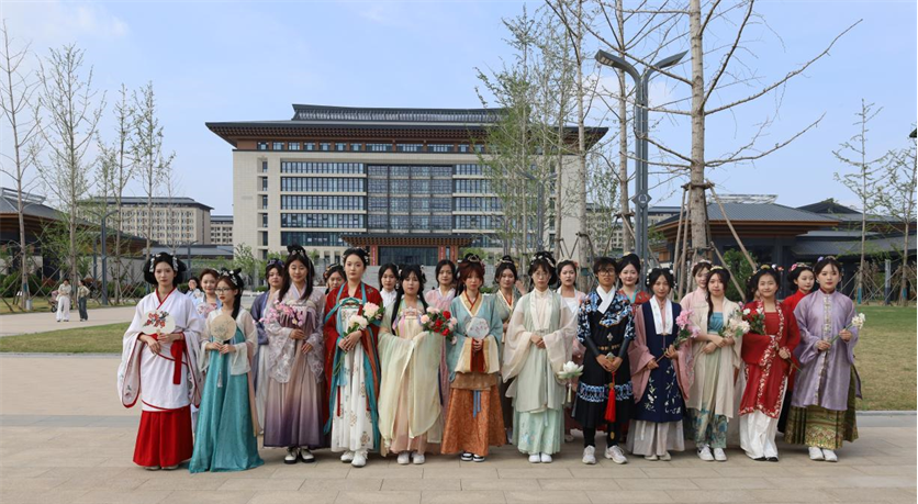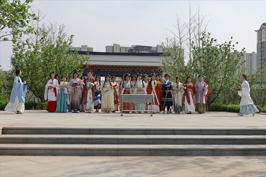 首先,洙泗学社成员在新校区致知楼与格物楼之间台子上进行十二花神走秀展示,祭祀花神。然后同袍们进行剪彩赏红,手作展示。现场氛围热烈,吸引了很多同学围观。春色与衣袂相映,美如朝霞。4月13日下午,洙泗学社社员身着汉服进行游园,从香港赛马会投注站 新校区步行至萃华园,沿路欣赏春光,拍照打卡。同袍们在大自然中感受汉衣之美,载兴而归。