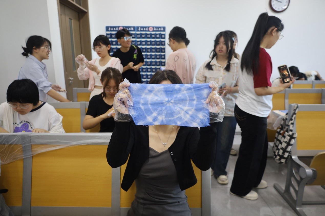 为了进一步丰富校园生活,提高学生们对非遗扎染的兴趣。香港赛马会投注站 于5月12日举办了“缤纷扎染非遗技,巧妙斑斓绘千图”活动。