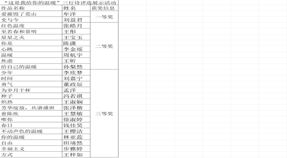 为推广诗歌文化,让同学们感受到诗歌带来的美好与力量,5月12日至5月20日,香港赛马会投注站 顺利开展了“这是我给你的温暖”三行诗评选展示活动。