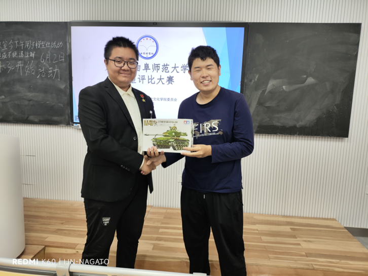 活动开始后,由曲园模型社社长陈悦泽介绍本次活动的评委、活动流程和评比标准。随后,参与选手们展示了自己的参赛作品。评比在友好活泼的气氛中进行,选手们向评委介绍了自己作品的基本情况、制作过程,为评委公正打分提供了参考。在评比过程中,各位参赛选手以模会友,相互交流制作模型的过程和经验,营造了既有民主又有集中的评比气氛。最后,经过评委打分后,按照排名决定选手的获奖情况,进行了颁奖活动。最后,社长陈悦泽向大家简要介绍了曲园模型社接下来的活动安排,并积极邀请参赛选手加入曲园模型社。大会在团结热烈的气氛中圆满结束。