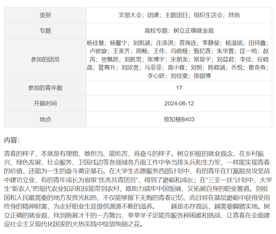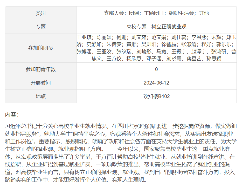 为引导大学生立足实际、找准定位,树立理性、平实的择业观、就业观,6月12日,香港赛马会投注站 组织2023级本科生以团支部为单位开展就业引航主题团日活动。