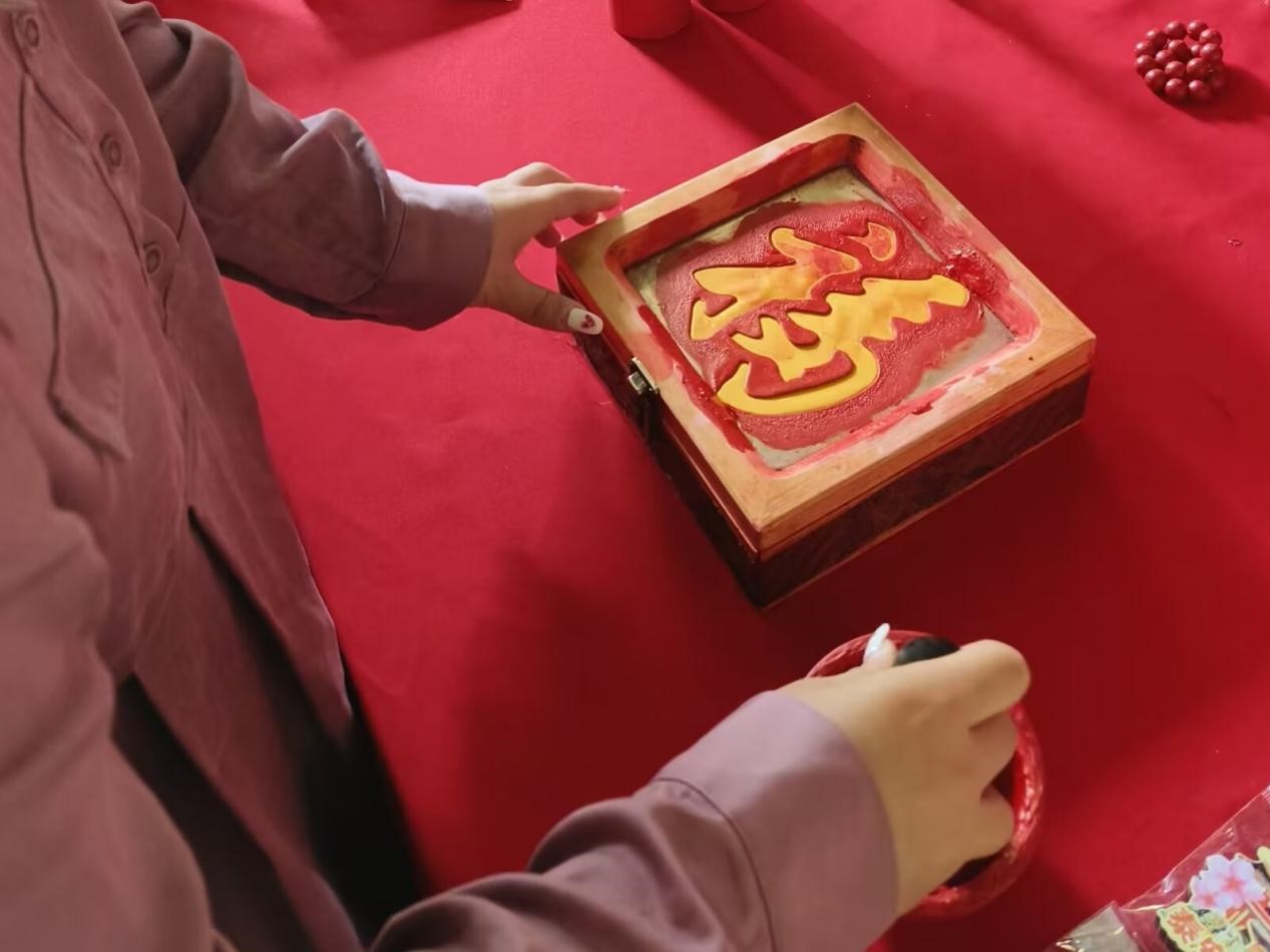 欣赏完书画作品后,队员们移步至拓印馆,准备亲身体验拓印这一古老的技艺。拓印作为我国一项古老的传统技艺,具有极高的艺术价值和文化意义。它不仅能够将古代的碑刻、石刻等文物上的文字和图案清晰地复制下来,为后人研究历史文化提供了重要的资料,同时也是一种独特的艺术创作形式。在拓印馆内,专业的老师首先为实践队队员们介绍了拓印的历史渊源、发展历程以及基本的操作方法和技巧。实践队队员们聚精会神地聆听着老师的讲解,不时提出自己的疑问和想法。随后,在老师的指导下,实践队队员们纷纷拿起工具,开始亲手体验拓印的过程。他们先将宣纸轻轻覆盖在刻有福字的模具上,然后用拓包蘸取适量的朱砂,轻轻在宣纸上均匀拍打。随着拓包的一次次落下,福字渐渐在宣纸上显现出来,一幅精美的拓印作品就这样诞生了。实践队队员们纷纷表示,通过这次拓印体验,不仅让他们学到了一项新的技能,更让他们对传统文化的传承有了更深刻的认识和理解。