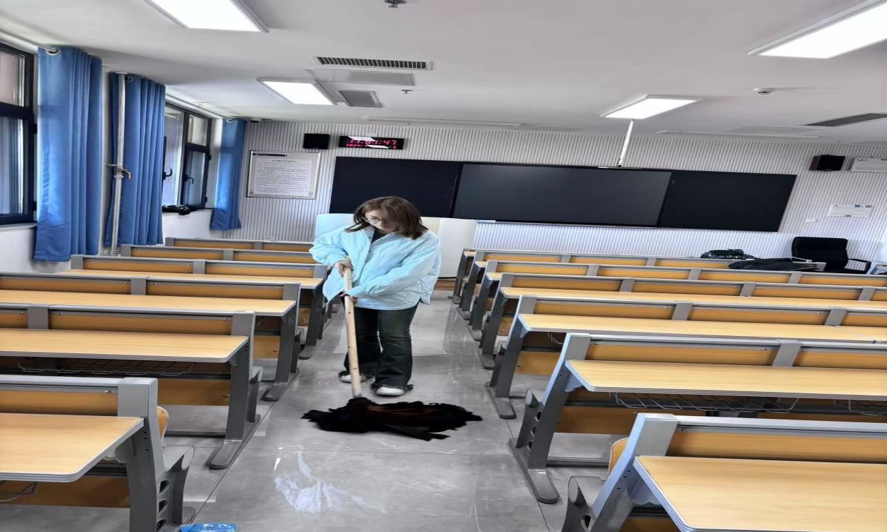 学生们亲身参与到拖地活动中,为教室的地板进行清洁,一拖一拉之间让它们拥有了崭新的面貌。学生们细致认真的表现,热情高涨的态度,使活动完成得又快又好。