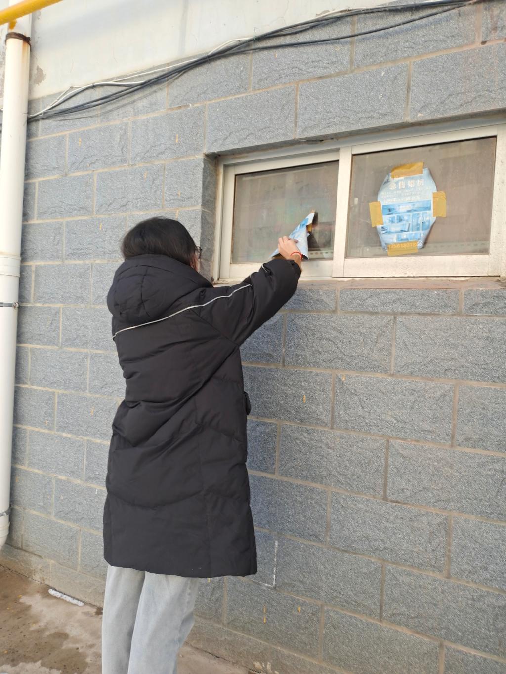 经过前期与社区相关工作人员进行紧密的沟通、协调后。活动当日,实践队员们早早就在社区广场集合。尽管天气寒冷,但实践队员们的热情丝毫未减。随后社区工作人员为实践队员们分发了清理工具,包括铲子、刷子、喷壶、垃圾袋等,并详细讲解了清理小广告的技巧和注意事项。由于小广告分布广泛,楼道、电线杆、公告栏等地都有它们的踪迹。社区工作人员和实践队员们决定分组行动,奔赴各自负责的区域。他们穿梭在大街小巷,仔细搜寻着每一处小广告的踪迹。在居民楼的楼道里,小广告密密麻麻地贴在墙壁、楼梯扶手和电线杆上,有的甚至已经张贴多年,十分顽固。