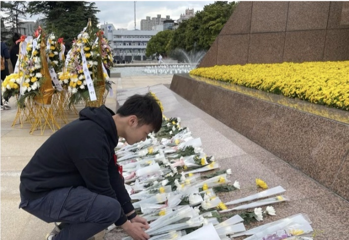 盛夏的骄阳火热,阳光透过稀疏的云层,洒在大地上,风带着草木的气息扑面而来。石板路近两万株树木修剪得整整齐齐,每一棵都像是在站岗的哨兵。松柏的影子落在墓碑上,像给烈士们披上了迷彩。这座纪念碑造型古朴庄重,主体镌刻着金色的纪念文字,记录着革命先辈们浴血奋战的峥嵘岁月与不朽功勋。碑身四周辅以浮雕,生动再现了革命战争年代临淄儿女英勇抗争、无畏牺牲的场景,每一处细节都承载着沉甸甸的历史记忆。左右是两簇带着五角星的草丛环绕,正面刻有“革命烈士纪念塔”7个大字,背面刻有“革命烈士永垂不朽”8个大字,前来参观的实践队员纷纷表示,站在纪念碑下,仿佛能感受到当年革命先辈们的坚定信念与不屈精神。“每次凝视这些文字和浮雕,都觉得心灵受到震撼,更加深刻地理解了今天的幸福生活来之不易。”一位实践队员感慨道。