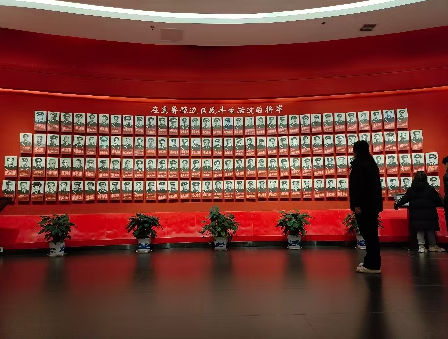 穿过刻有“人民胜利万岁”的砖砌门楼,队员们进入核心展区。司令部旧址的北屋仍保留着当年的作战沙盘:以清丰为中心,用黏土捏造的平汉、陇海两条铁路在沙盘上蜿蜒,红色小旗插在濮阳、范县、观城等7个专区。“1945年4月,邓小平就是在这里部署南乐战役,仅用72小时便拔除日伪据点37处。”讲解员指着沙盘边缘的黄色箭头说,“箭头方向代表日伪进攻路线,旗子上的数字是缴获武器的数量,一场战役的胜负,往往决定着一个区域政权能否稳固。”队员们纷纷蹲下身,用手机录下沙盘细节,大家认为这比教科书上的静态地图生动太多。