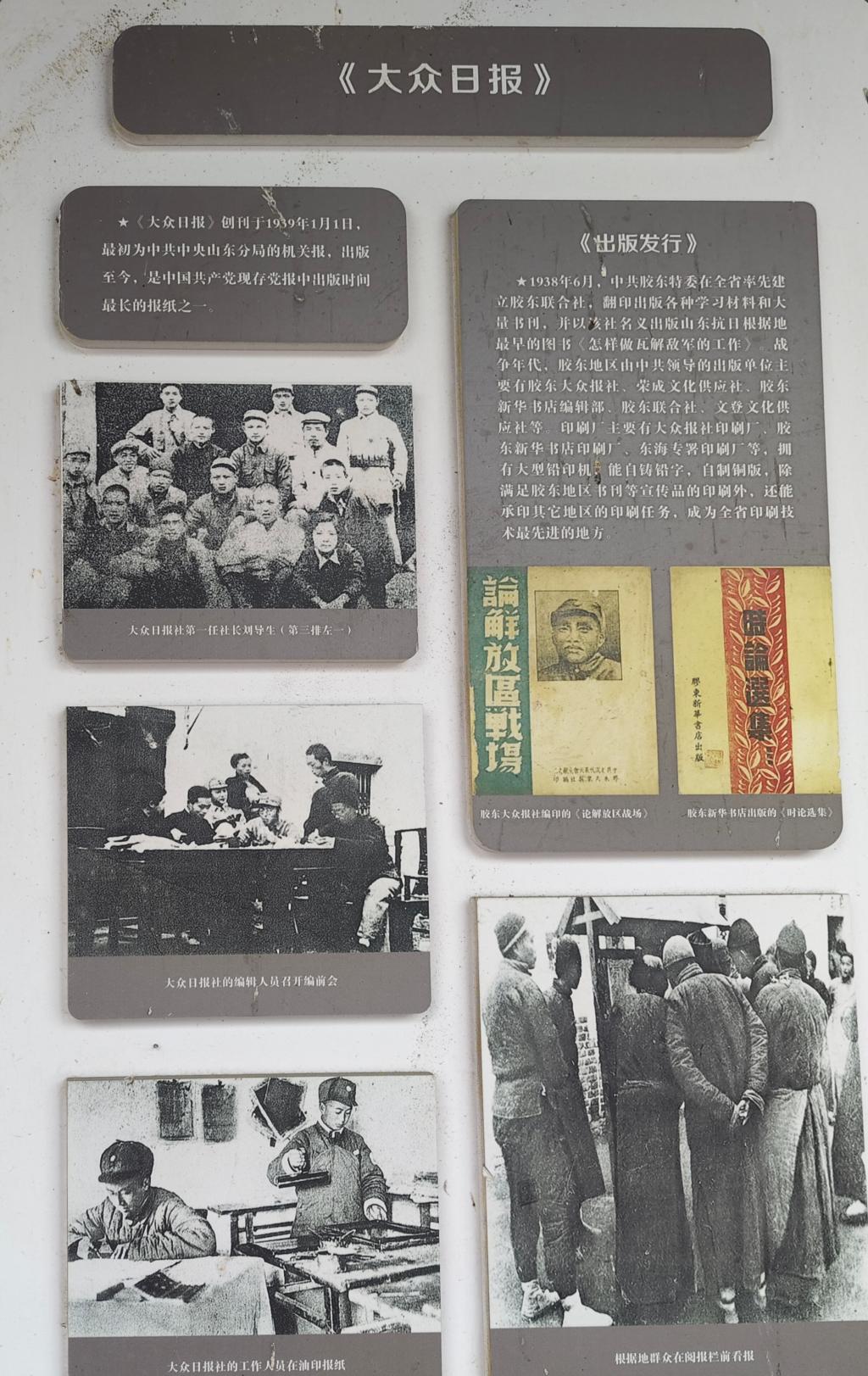在一间复原的通信室里,老式电话机、手摇发电机和布满补丁的军用电台模型整齐排列。实践队员注意到,电台旁的木箱上刻着“1943”字样,旁边的记录本上密密麻麻写着密码对照表。“当时没有先进设备,通信兵要背着几十斤的机器在山沟里穿梭,一旦被敌人发现就只能销毁密码、与设备共存亡。”讲解员的话语让队员们驻足良久,有队员轻轻抚摸着木箱上的刻痕,仿佛能触碰到当年战士们掌心的温度;八路胡同是村里保留最完整的抗战时期民居群,狭窄的石板路两侧,十余户人家的院墙上仍保留着“抗日救国”“军民一家”的标语。“那时家家户户都有‘地下粮仓’,表面看是普通的柴草堆,下面藏着给八路军的粮食和药品。”讲解员指向墙角一处不起眼的地窖入口,队员们俯身查看时,发现窖壁上还留存着当年用粉笔画的五角星;胶东新华书店旧址内,泛黄的《大众日报》合订本整齐码放在书架上,印刷机、铅字盘等老设备还原了战时出版场景。“当时纸张紧缺,报社就用桑皮纸、草纸印刷,记者们背着油墨桶在枪林弹雨中采写新闻。”实践队中的新闻专业学生特意凑近查看报纸上的文章,发现许多稿件末尾标注着“于火线”字样,字里行间的激昂笔触让他们深受震撼。