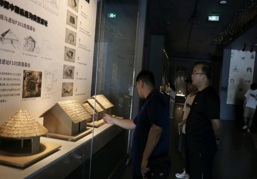 讲解员详细介绍了每一件文物的出土背景、用途以及所反映的仰韶文化特征,让实践团成员对仰韶文化有了更为直观、深入的认识。为了增强参观者的体验感,博物馆还设置了一些互动体验项目。实践团成员积极参与其中,通过模拟考古发掘、陶器制作等活动,亲身体验了考古工作的乐趣与挑战,同时也更加深刻地理解了仰韶文化的内涵。除了文物陈列,博物馆还设有遗址展示区,真实地呈现了仰韶村遗址的发掘现场与原始风貌。实践团成员沿着参观通道,近距离观察了遗址中的房基、灰坑、窖穴等遗迹,想象着远古时期仰韶先民在这里生活、劳作的场景。在遗址保护屋内,文化断层面与考古展示区展示了考古发掘的过程与成果,让大家了解到考古工作的艰辛与重要性。