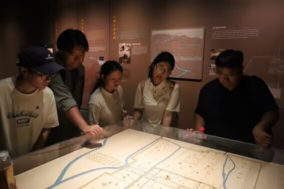 在“千秋创举,世界大同”展厅,实践队员结合考古研究成果展示及文献记载,感悟汉魏洛阳故城的国际影响力和为世界文明发展作出的杰出贡献。展厅内的数字化多媒体互动展示方式,让实践队员仿佛穿越时空,亲身感受到丝绸之路的繁荣,体会中西方文明交流互鉴。