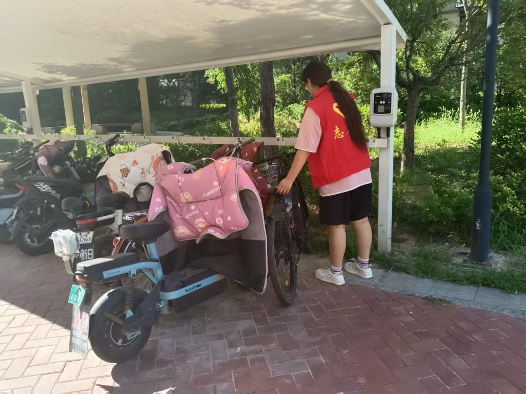 7月28日,实践队员开启环境焕新行动。清晨,实践队员身着统一志愿服,携带清洁工具集合。首先聚焦社区垃圾分类站点,实践队员先用铲刀、抹布清理站点周边小广告、污渍,重新绘制清晰的垃圾分类指引图,标注各类垃圾投放规范。 针对社区绿化带杂物堆积问题,实践队员捡拾烟头、纸屑、枯枝,不放过卫生死角。在清理过程中,遇到居民随手丢弃垃圾,实践队员并非简单劝阻,而是递上垃圾袋,讲解垃圾分类知识,以耐心沟通带动居民环保意识提升。