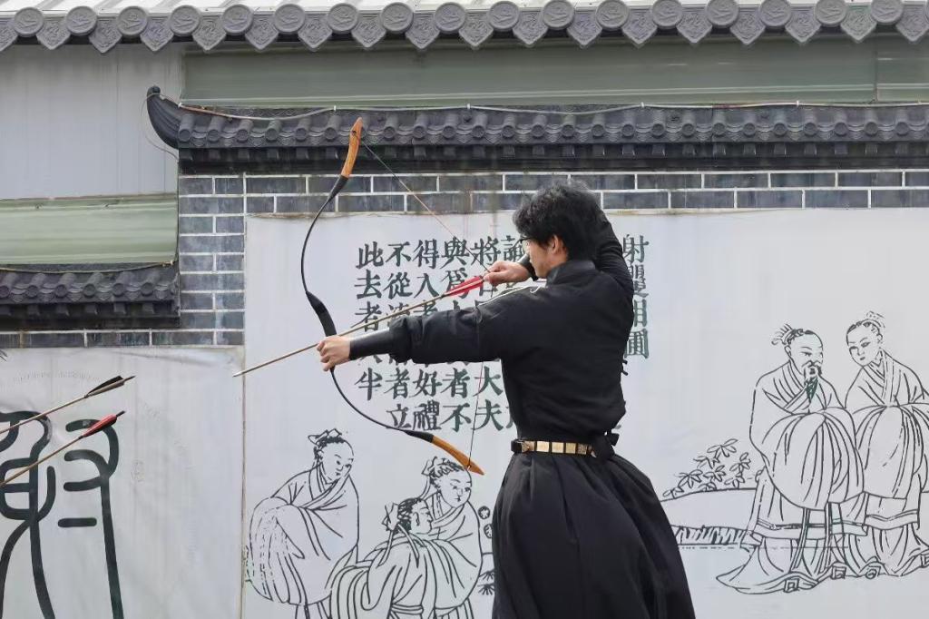 过程中,还设置了小组竞赛,以射中环数和礼仪规范为评分标准,既激发学生竞争意识,又强化对射艺礼仪的重视。竞赛时,各小组严阵以待,从取箭、拉弓到射箭,动作规范有序,展现出对射艺的尊重与认真。