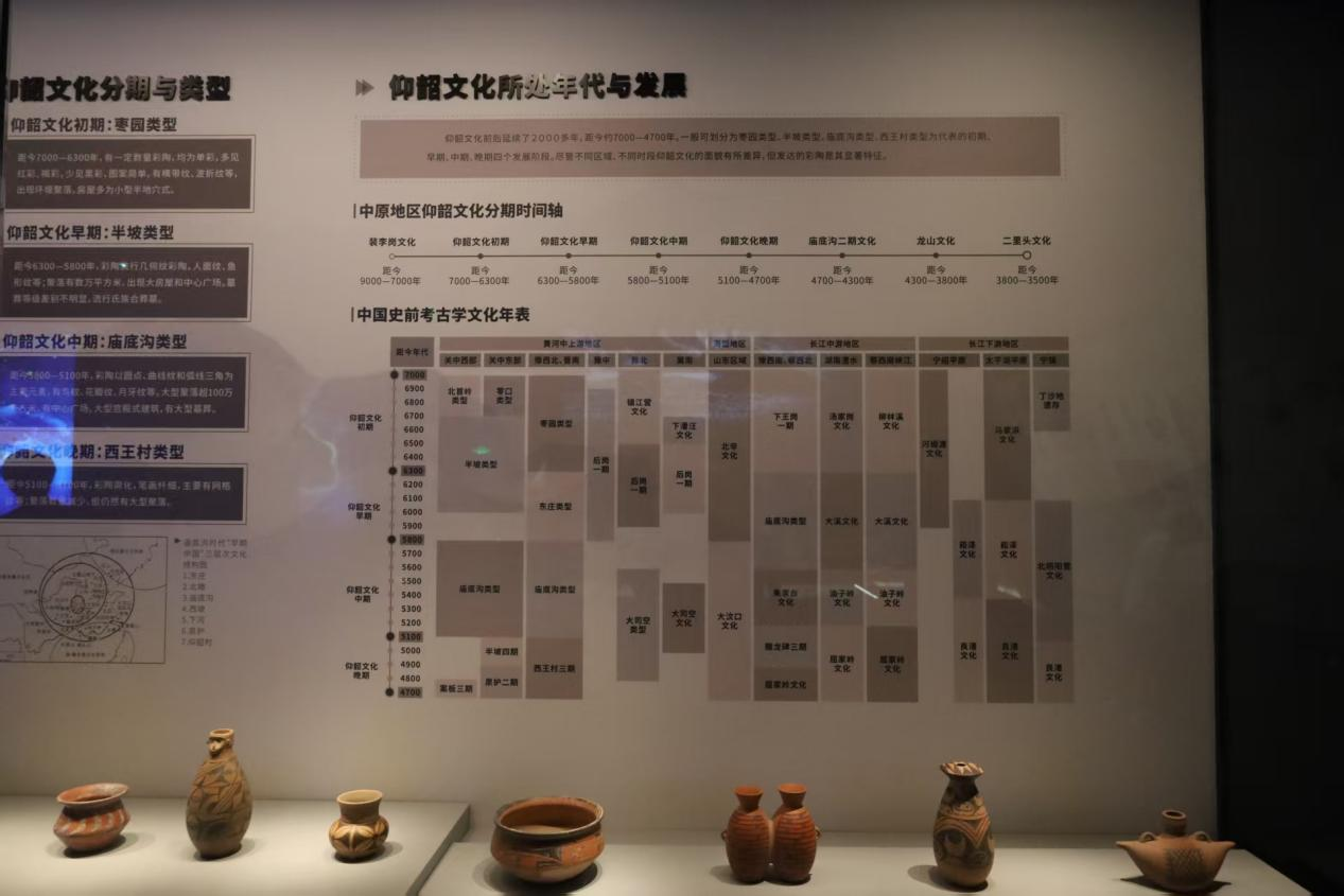 黄河作为中华文明的母亲河,其流域的早期文化发展具有连续性和多样性。仰韶文化作为新石器时代中晚期的代表性文化,与黄河的生态资源密不可分。 从农业起源方面来看,仰韶文化遗址中发现的粟、黍碳化颗粒,证明黄河流域是我国旱作农业的发源地之一,推动了人口增长与社会分工;从制陶技术方面来看,彩陶的广泛分布体现了手工业的专业化,其纹饰与黄河自然景观(如水流、鱼纹)的关联性,反映了先民的审美与信仰;从聚落演变方面来看,从半地穴式房屋到大型环壕聚落,仰韶文化的社会结构逐渐复杂化,与黄河水系的资源供给能力直接相关。同时,仰韶文化的扩散路径与黄河流域的地理扩张高度吻合,其影响范围东至豫东,西达甘青,北抵河套,南接江汉,形成了早期中国文化互动的雏形。