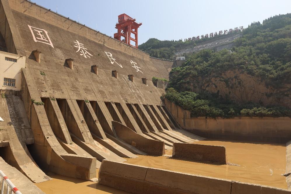 登上坝顶,实践团成员近距离观察了大坝的整体面貌。远处,清水廊道与排沙孔有序运作,泥沙在调控中缓缓沉降,形成“清浊分明”的独特景观。成员了解到,自1973年首次改建增设排沙隧道以来,大坝通过动态调整水位,将库区泥沙淤积量减少60%,有效保护了关中平原的生态环境。