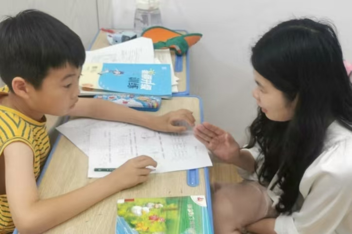 “老师,这道鸡兔同笼题我还是不懂。”“姐姐,英语作文怎么开头呀?”托管教室里,这样的提问此起彼伏。队员们采用“1+N”辅导模式:1名队员负责3-4名学生,先集中讲解共性难题,比如用“画图法”拆解数学应用题,用“时间轴”梳理历史事件;再针对个人短板单独辅导——给拼音不过关的低年级学生编“声母儿歌”,帮作文跑题的高年级学生列“段落提纲”。四年级的小浩数学总考不及格,队员小林发现他喜欢打篮球,便用“投篮得分算概率”举例讲算术,两周后小浩的单元测验竟进步了20分,拿着试卷跑来报喜时,眼里的光格外亮。