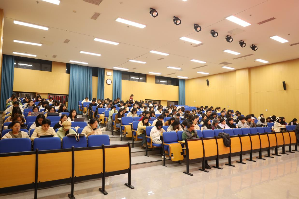 讲座中,吕厚轩结合当前考研形势,从院校及专业选择、备考时间规划等方面进行深入剖析,提醒同学们理性定位目标,注重知识积累与能力提升同步推进。牟学林结合自身经历,围绕学科重难点及学术素养培养等内容展开详细讲解,鼓励同学们尽快确定目标院校并明确备考方向。此外,活动还邀请考研机构嘉宾解读最新考研政策,针对同学们关心的报名流程、复试调剂等问题进行答疑。