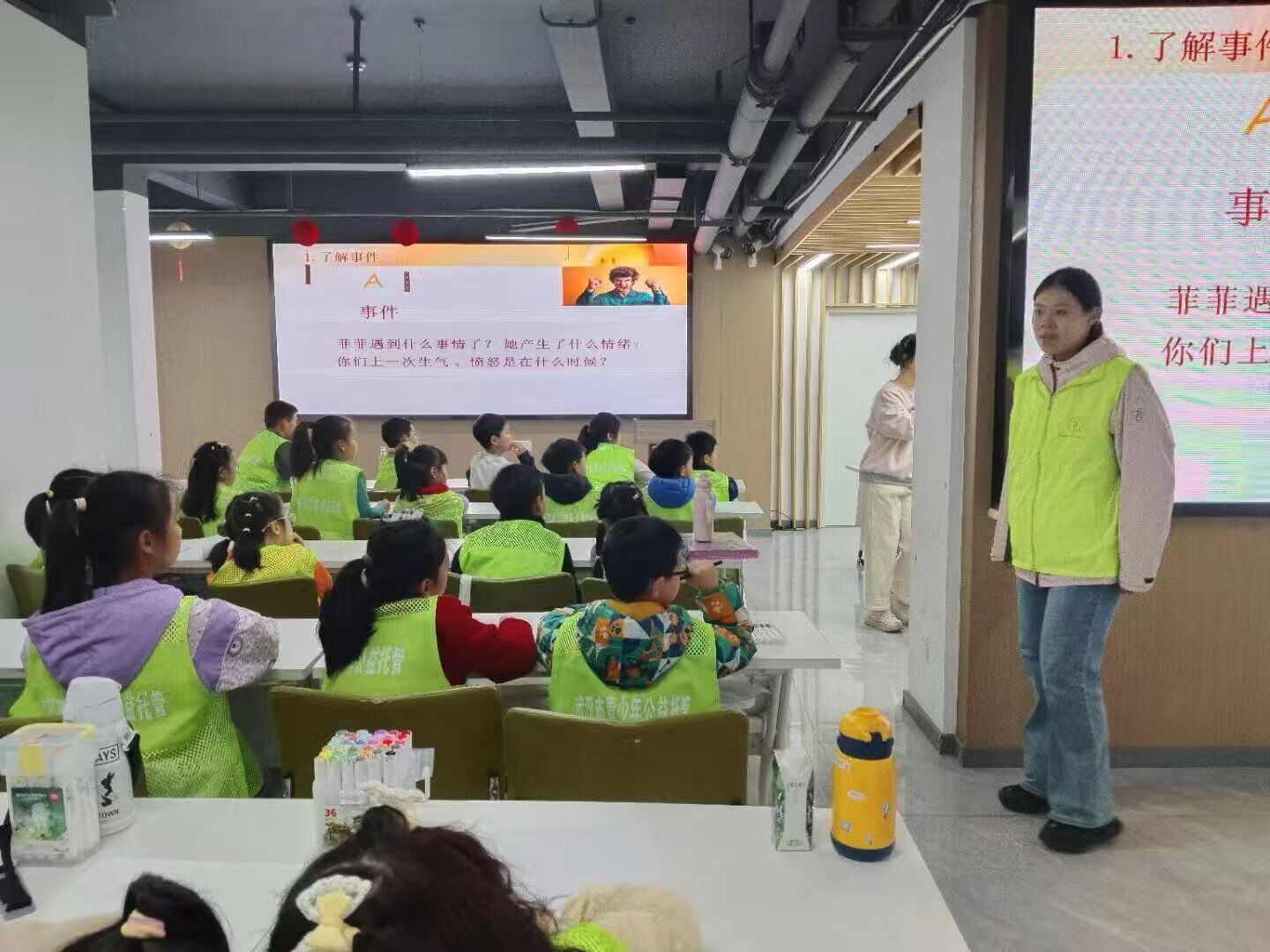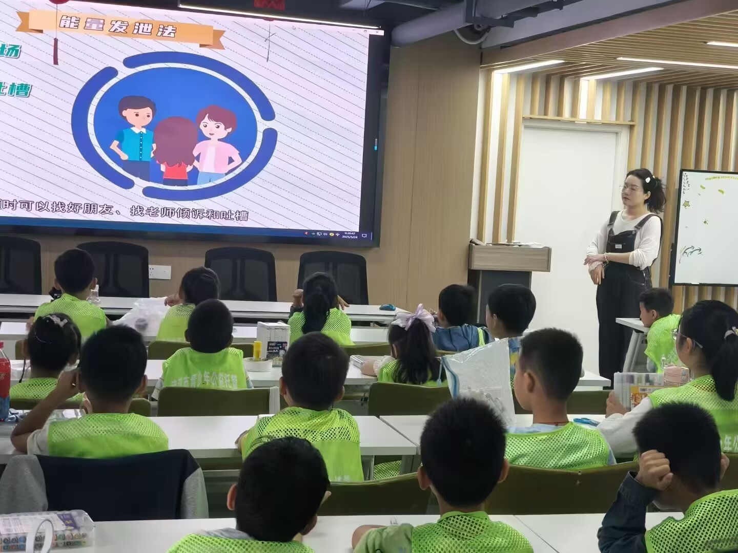 在情绪疏导环节,实践队聚焦 “坏情绪如何应对” 的核心问题,开发了 “能量发泄法” 等趣味教学模块。队员们通过动画演示、情景模拟等直观易懂的形式,向孩子们讲解倾诉宣泄、运动调节、积极暗示等多种情绪调节策略,并创新设置 “吐槽大会”“情绪树洞” 等互动场景,为孩子们营造安全包容的表达环境,鼓励他们大胆说出心中的烦恼与困惑。
