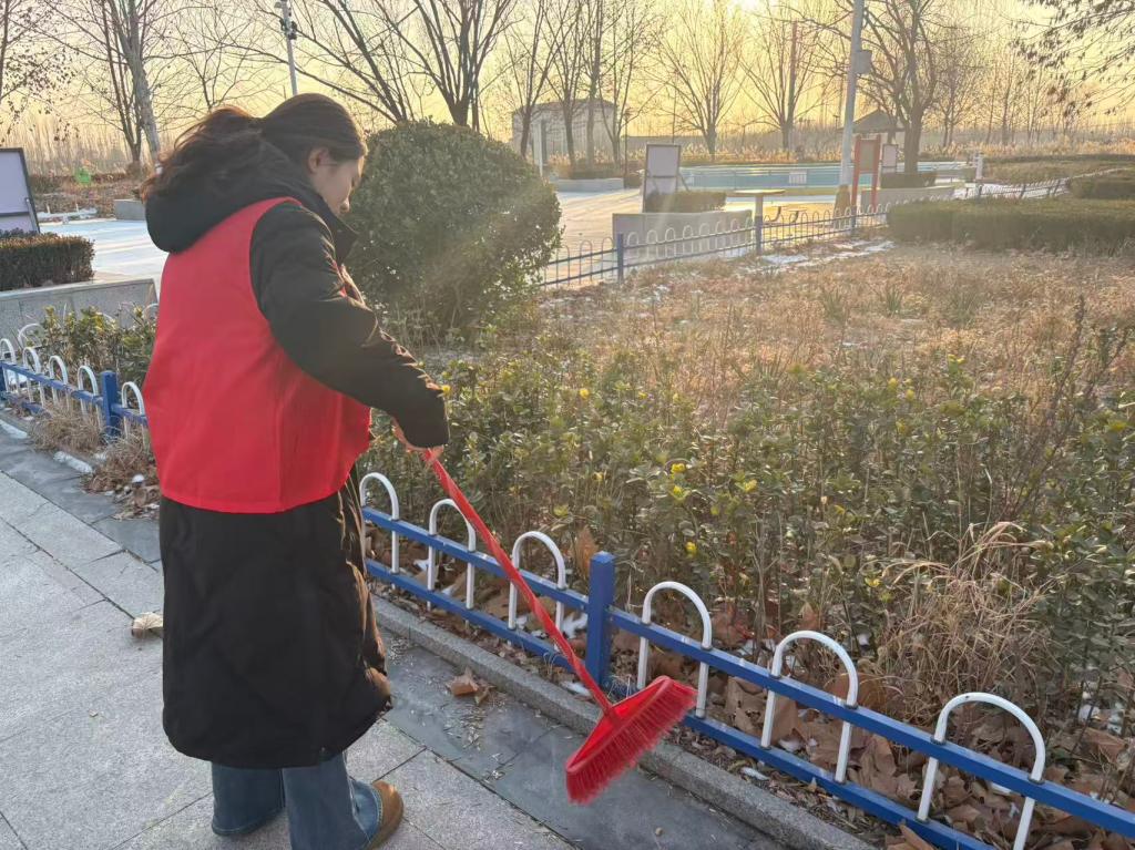 午后暖阳驱散寒凉,队员们携带清洁工具前往镇中心公园,迅速分工开展清扫。大家有的清扫步道落叶残雪,有的捡拾草丛、石缝中的杂物,有的对垃圾进行分类打包,有条不紊地清理卫生死角,全力还原公园洁净面貌。