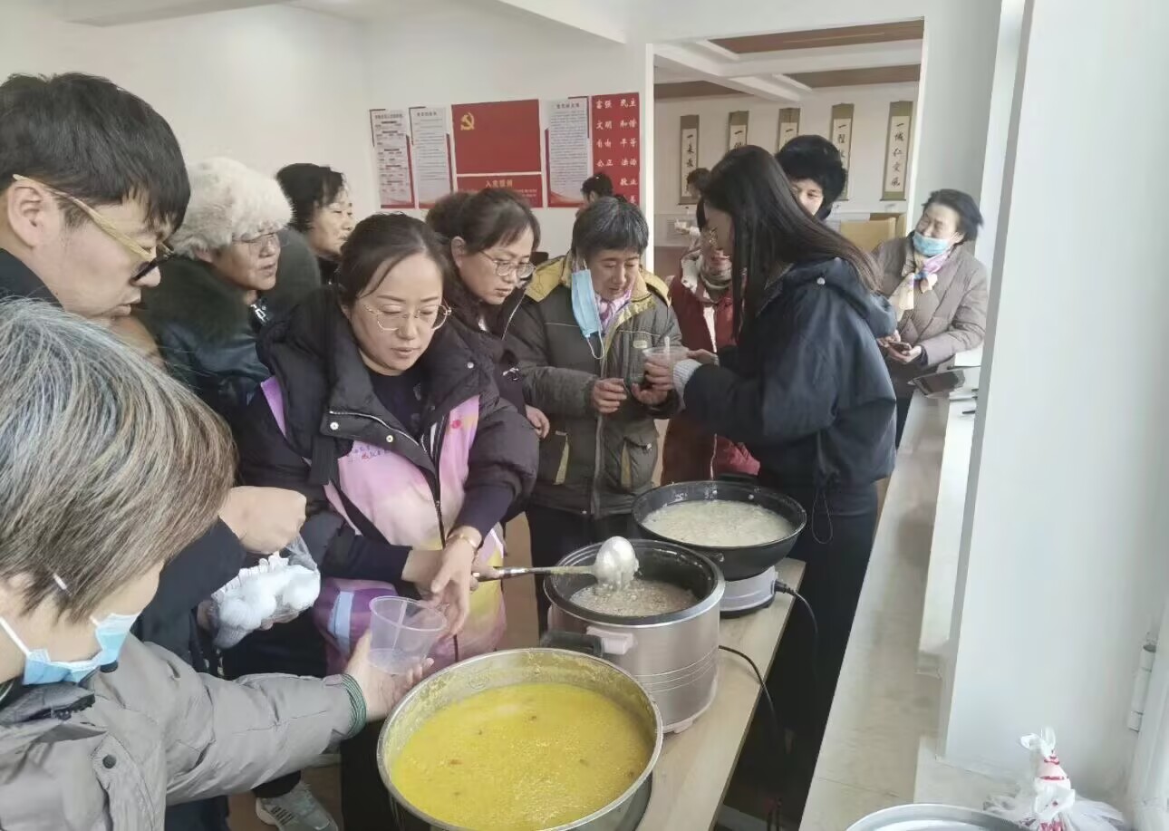 随后的“暖心服务”环节,则更为直接地诠释了青春热忱与实干精神。大家把早早熬制好的热气腾腾的养生粥品与代茶饮,被细心摆放在铺着洁净桌布的长桌上,甜香与暖意悄然弥漫。身着统一标识的服装,分工明确,各司其职:有的维持着井然有序的队伍,有的稳稳当当地盛粥递碗,有的俯身与坐在一旁歇息的老人亲切交谈,询问口味与身体状况,有的则细心提醒居民小心烫口、按需取用。每一个递送的瞬间,都伴随着轻声的叮嘱与温暖的笑意;每一次短暂的等候,都有志愿者们耐心的安抚与关怀。这份朴素的关怀,如涓涓暖流,在社区冬日的空气里静静涌动,传递着超越言语的温暖能量,也让“实干”二字,拥有了最真切可感的体温与模样。