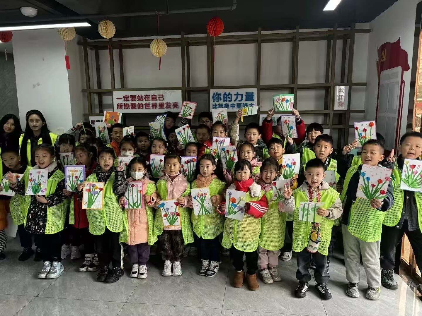 完成制作后,实践队成员组织孩子们进行作品展示与集体合影。孩子们手持色彩斑斓的翻花作品,在镜头前灵活翻转,展示自己的成果,脸上洋溢着自豪的笑容。实践队成员还邀请部分孩子分享制作心得,引导他们用“指尖的艺术”向身边人讲述非遗故事。为深化活动影响,实践队将优秀作品在社区文化墙进行为期一周的展示,吸引居民驻足观赏,进一步扩大非遗文化的传播范围。