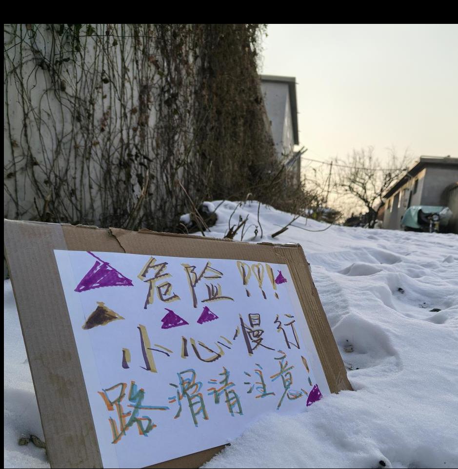 2026年1月19日,我院“乡韵青行实践队”走进山东省枣庄市市中区蒋庄村,开展以“桑梓焕新,青力同行”为主题的乡村雪后公共治理与邻里互助实践活动。2026年1月中旬,枣庄市遭遇持续降雪,这是2026年的第一场雪,瑞雪昭示着丰年,雪花盈盈,作物吸收着水分彰显着来年的丰收。但同时雪后融化结冰,导致路面冻结等现象,也为居民造成了出行不便等问题。而蒋庄村是一个老年人和儿童占比较大的村庄,结冰会对其生活产生很大影响。因此我院实践队响应村委号召,联合返乡青年及热心村民开展雪后清理与乡村公共空间治理行动,探索青年力量在乡村应急治理中的角色与路径。