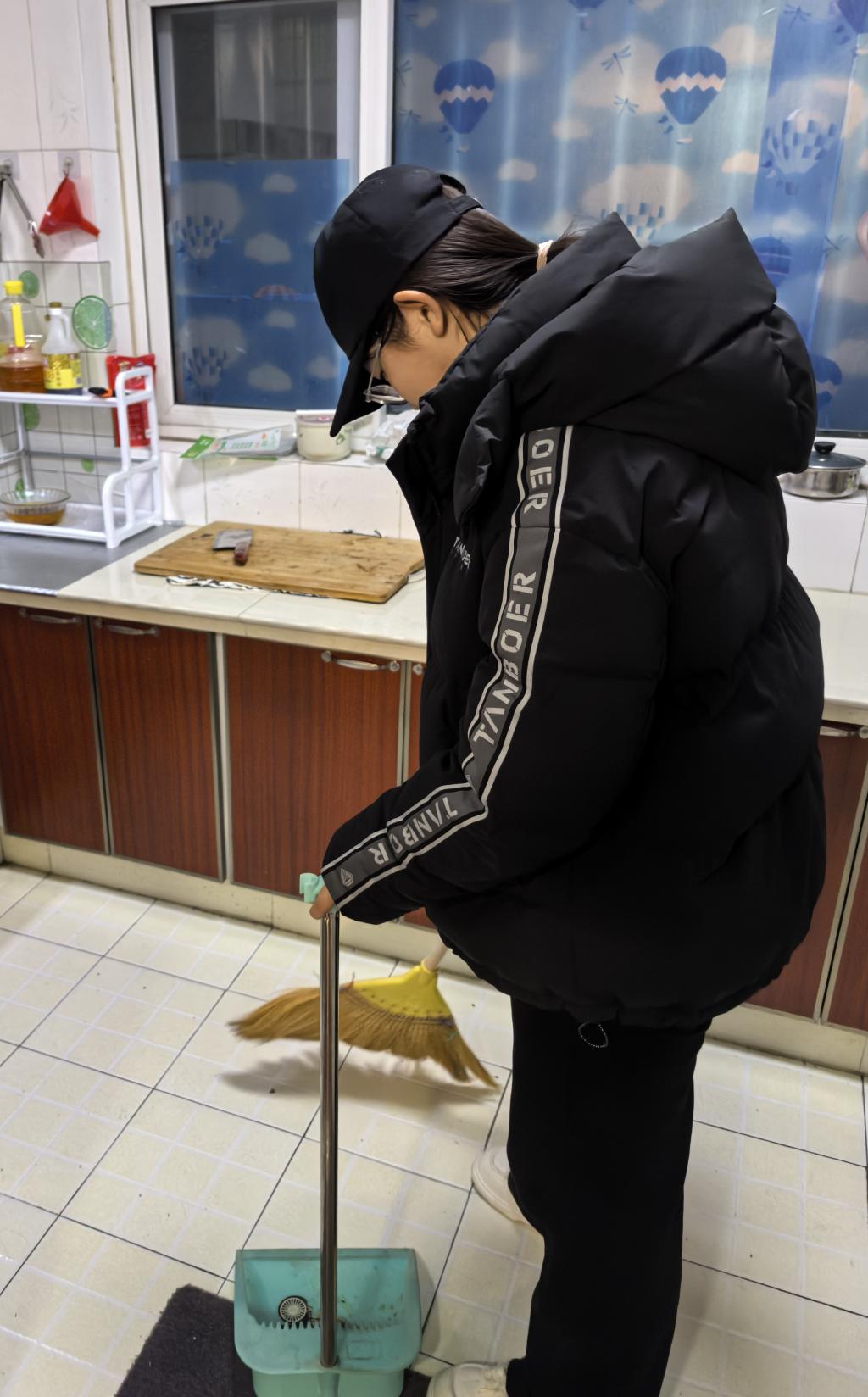 这场“上门清洁暖乡邻”行动,源于实践队成员们对家乡的赤子之心,更依托化龙镇坚实的志愿服务基础与治理体系。化龙镇团委联合镇社工站、村委会搭建实践平台,借鉴“镇统筹、村落实、网格管”三级治理机制,吸纳百余名实践队成员投身人居环境提升工程,重点针对独居老人、困难家庭的楼房居室及楼道公共区域开展清洁服务。在化龙镇居民小区,实践队带着扫帚、除油剂等专业工具分组入户,从擦拭窗户玻璃、清理厨房重油污,到规整室内杂物、擦拭楼梯扶手,再到清理楼道堆积的废旧物品,不放过任何卫生盲区。“家乡正在全力创建和美乡村,不少乡亲搬进了新楼房,我们放假不能‘躺平’,能用双手为乡亲们打造整洁安全的居住环境,特别有意义。”