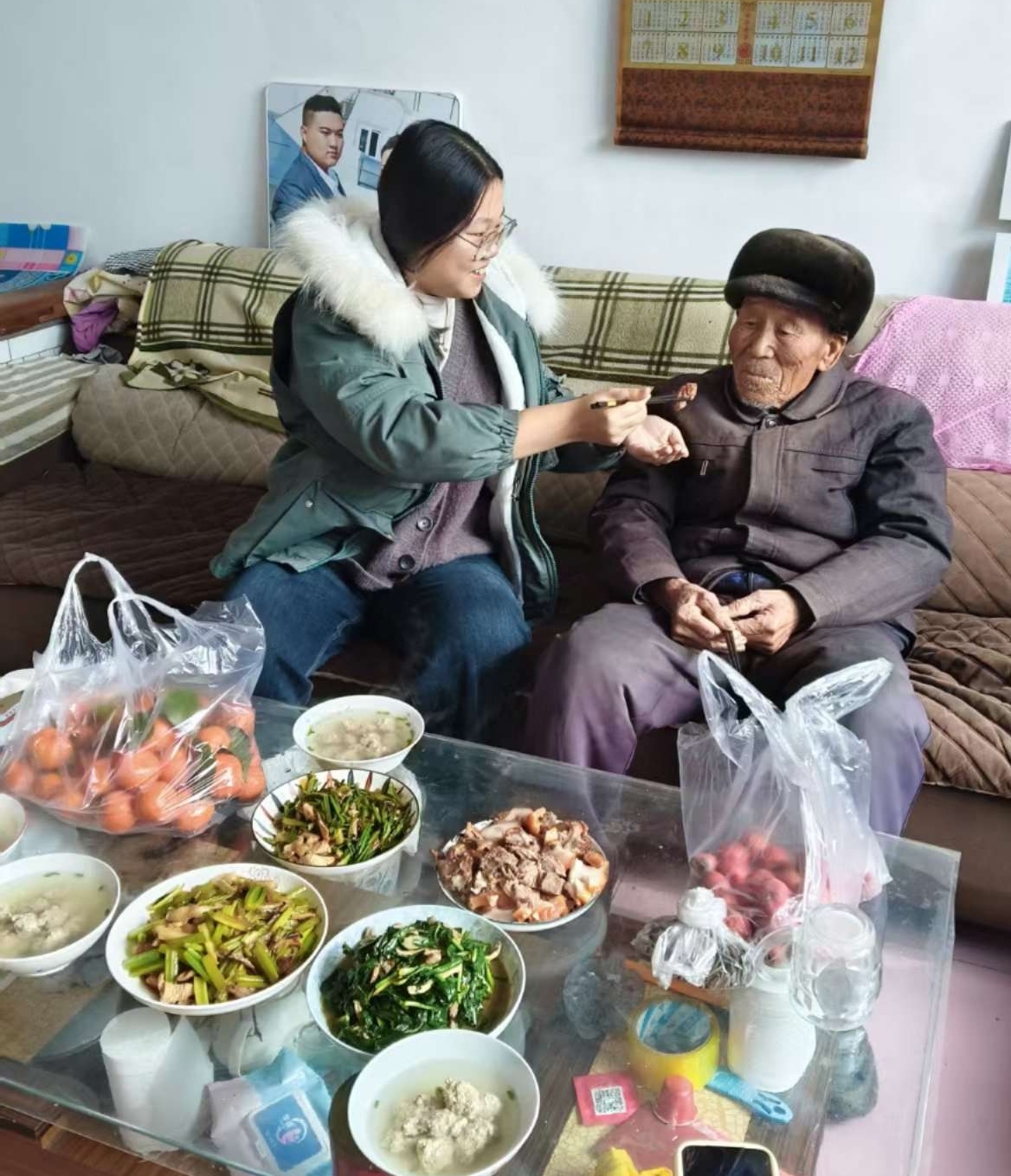 清晨,满载慰问物资的车辆沿着蜿蜒的乡村公路缓缓前行,志愿者带着精心准备的慰问品,深入老人家中。在 82 岁的独居老人王奶奶家中,志愿者一进门便忙活起来:细心检查老人家中的供暖设备,将崭新的棉被铺在床上,叮嘱老人注意保暖和用电安全;拿起扫帚打扫庭院、擦拭门窗,把杂乱的屋子收拾得整洁有序;然后站在老人身边,轻声询问饮食起居和身体状况,耐心倾听老人的心愿,用朴实的话语安抚老人的情绪。“你一来,家里一下子热闹了,心里也暖烘烘的。” 王奶奶握着志愿者的手,眼角泛起笑意,脸上的皱纹都舒展开来。