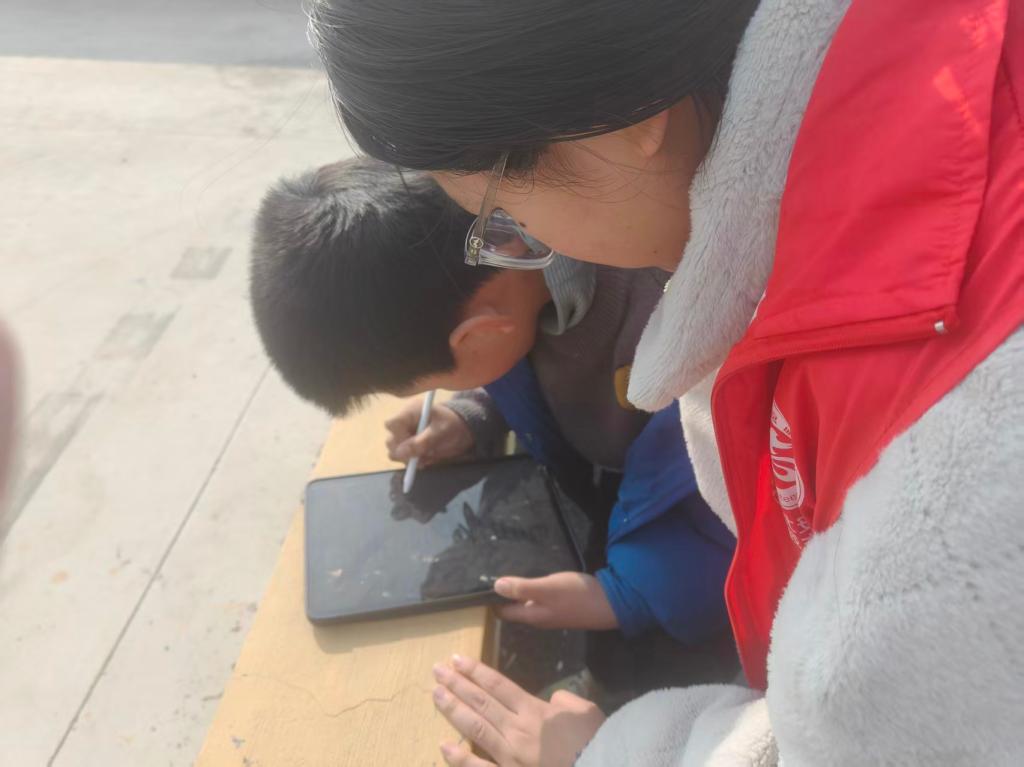 公共环境焕新后,垃圾分类科普环节正式拉开帷幕。实践队队员化身“环保科普员”,以寓教于乐的方式,结合青少年的认知特点,通过生动直观的方式开展教学,让青少年在轻松愉悦的氛围中学习环保知识。首先,队员们利用平板电脑播放精心准备的垃圾分类科普短视频,视频以动画形式讲解可回收物、厨余垃圾、有害垃圾、其他垃圾的分类标准、识别方法及回收价值,将抽象的环保知识转化为趣味十足的视觉体验,瞬间吸引了现场小朋友的注意力。