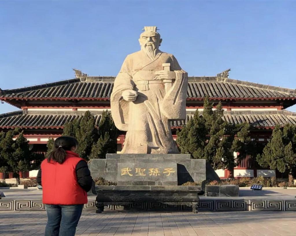 中国孙子兵法城作为依托孙武故里打造的专题文化景区,是展现《孙子兵法》核心内容与历史脉络的重要载体。实践队员依次参观景区序殿、十三篇主殿及配套展馆,通过文字介绍、文物陈列、场景复原等形式,全面了解孙武的生平经历、《孙子兵法》的成书背景与传播历程,清晰把握兵学文化的起源与发展脉络。实践队员认真记录景区内的历史资料,梳理古代兵学文化与齐鲁地域文化的内在联系,对孙武故里的历史地位有了更为直观的认识。