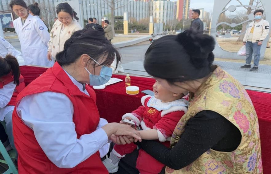 活动当天,寒风料峭,但孟子故里社区广场上却暖意融融。实践队队员们提前抵达现场,与医护人员一同布置诊疗台、摆放血压计、血糖仪、听诊器等医疗设备,整理涵盖妇幼保健、慢性病防治、儿童健康等内容的宣传手册。上午 9 时,义诊正式开始,队员们身披红色志愿马甲,迅速投入到各项服务中。