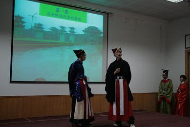 大赛在主持人热情洋溢的开场白中拉开帷幕。各参赛队伍悉心准备,通过精湛的演技、优美的音乐及其他元素的交相配合,为观众演绎了一幕幕经典的历史故事。首先上场的是《六月飞雪》剧组,窦娥声情并茂的话语让观众同情不已;《孔子驾到》剧组则使观众领略了孔夫子穿越时空的奇遇;《孔雀东南飞》是观众们为古代男女的坚贞爱情欷歔叹息;而《戊戌变法》中谭嗣同的凌然正气更是使在场的观众潸然泪下。九个剧组的轮番精彩演出使现场高潮不断,掌声连连。随后孔祥伟老师对各剧组进行了点评,对演员饱含情感、充满个性化的表演、对剧本的创新及舞台表现力提出了表扬,同时也提出了宝贵意见。