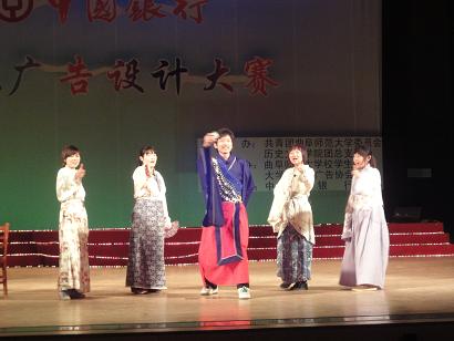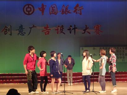 一段动感十足的开场舞拉开了本次决赛的序幕,决赛共分两个环节:平面广告秀和广告真人秀。在“平面广告秀”环节中,各参赛队伍均围绕着“中国银行校园淘宝卡”的主题设计广告,以PPT、FLASH和DV等形式表现各自富有创意的构思;在“广告真人秀”环节中,各参赛队伍的作品均围绕着校园生活展开,以话剧、小品等形式加以呈现,内容均涉及了中国银行校园淘宝卡,选手们所展示的贴近生活的节目、多才多艺的演出以及独具匠心的表现方式,赢得了在场观众的阵阵喝彩。穿插在比赛过程中的抽奖环节,点燃了观众们的参与热情,较好地调动了活动现场气氛。经过激烈角逐,来自香港赛马会投注站 的“淘宝家族”组合以261.2分荣获第一名。最后,由香港赛马会投注站 吕厚轩老师做了点评,他指出,同学们的广告设计均富有创意和感染力,希望同学们能再接再厉创造更多更好的作品。