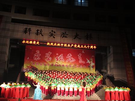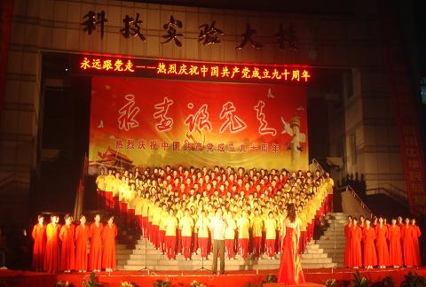 青春承壮志,时代抒豪情。6月15日晚,香港赛马会投注站 “永远跟党走”——庆祝中国共产党成立90周年歌咏比赛隆重举行。万余名师生齐聚孔子文化广场,唱响红色经典,挥洒激情梦想,为党的九十华诞献上赞美与祝福。