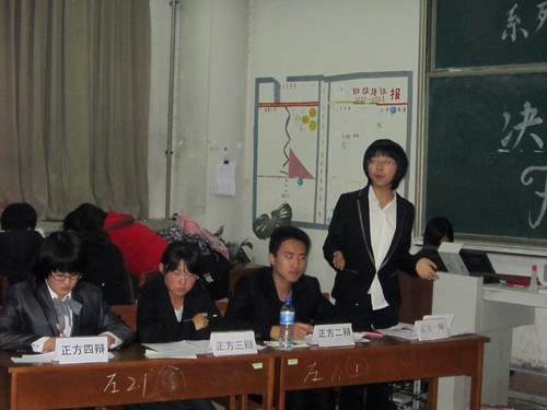 经过初赛、复赛的角逐,最终2010级历史3班代表队和2011级历史学类3班代表队挺进决赛。双方关于“中国铁路是否应该跨越式发展”的辩题展开辩论。本次辩论赛增加了才艺展示的环节,正方2011级历史学类3班代表队为大家带来了歌曲《爱,因为在心中》,反方2010级历史3班代表队则表演了诗歌朗诵。辩论赛伊始,双方就各方观点进行立论陈词、表明立场。接下来,在攻辩和自由辩环节中,双方辩手针锋相对、唇枪舌剑,但又不失风度,侃侃而谈,展现出了活跃的思维能力和敏捷的应变能力,赢得了评委和观众的一致好评。最后,在总结陈词环节中,双方辩手重新申明自己的立场,引用事例进行论述。辩论赛最后一环节是老师点评,韩锋老师、吕厚轩老师、李春玲老师以及刘伟老师依次进行了点评,他们提出了本次辩论赛的优点同时也指出了不足之处,并且为辩手们提出了宝贵的意见,老师们精彩的点评为本次辩论赛画上了圆满的句号。最终,反方2010级历史3班代表队获胜,正方2011级历史学类3班代表队的三辩选手获得最佳辩手的称号。