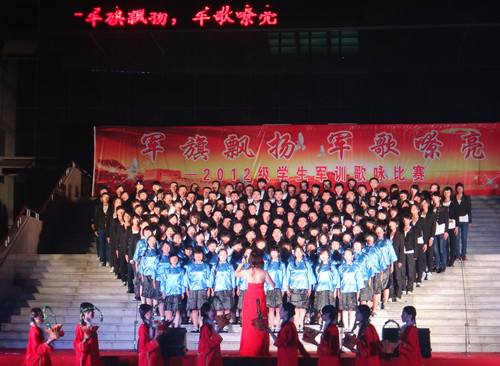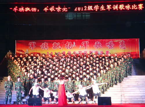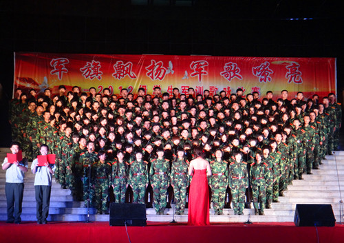 918日晚,“军旗飘扬 军歌嘹亮”2012级学生军训歌咏比赛在科技楼前拉开序幕。